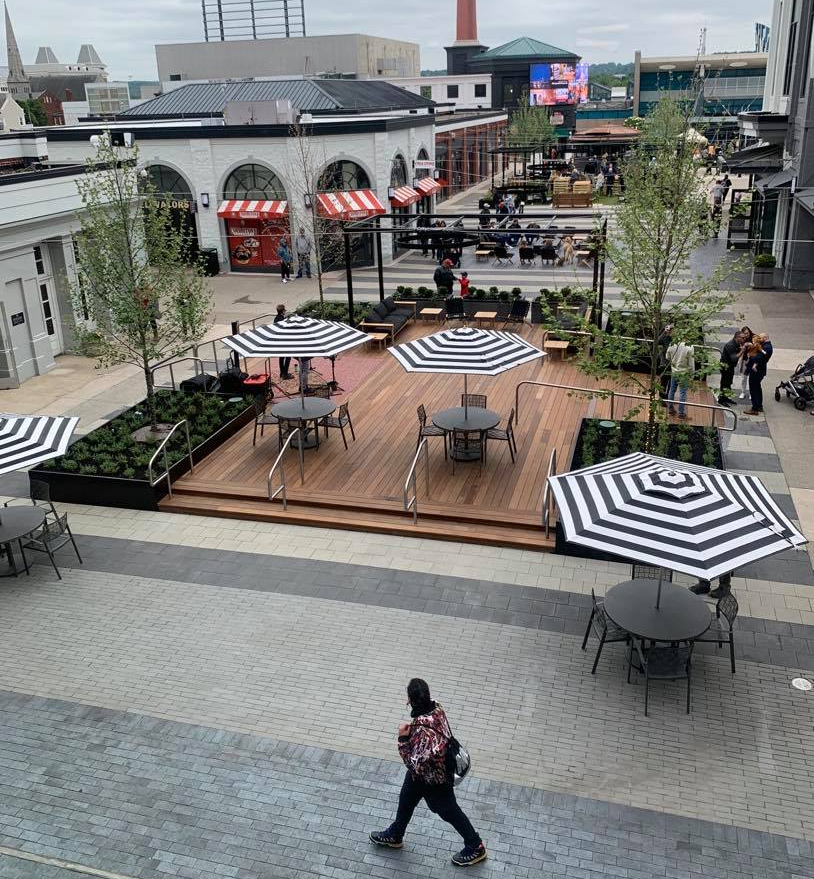 Newport on the Levee has transformed from an underutilized destination into a walkable, connected, waterfront community for friends and family to come and stay awhile. The team enhanced connectivity and the overall guest experience with the creation of a Third Street parking garage entrance; new valet loop; paint refreshes to the buildings’ exteriors; new signage and lights; enhancements to the Plaza; the installation of a massive LED screen; and most importantly, the addition of more communal spaces both indoors and outdoors. These reimagined communal spaces include the Gallery Building, Bridgeview Box Park and The Plaza.
