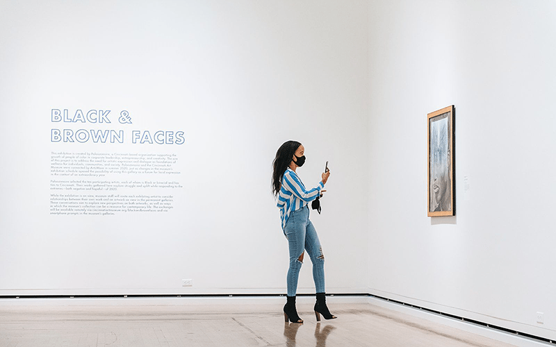 “Black & Brown Faces was created to uplift artists of color around the Midwest with a strong focus on Cincinnati-based artists,” said Grant. “We understand the importance of representation and our partnership with The Cincinnati Art Museum has allowed us to amplify our mission beyond our wildest dreams,” said Grant. “What we have created with this exhibition run with the support of the artist community, business community and those who come in bundles to experience this exhibition is even greater,” said Grant. “For that reason, we are grateful to do the work.”